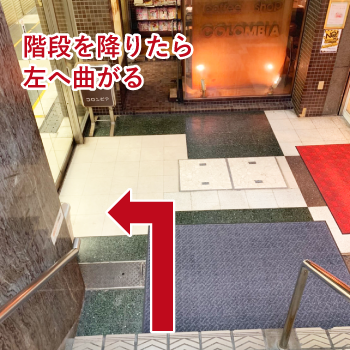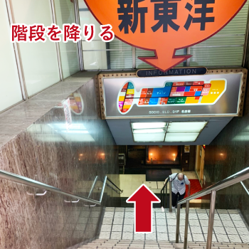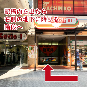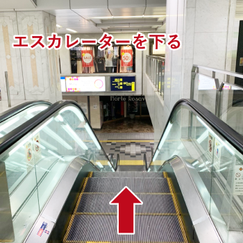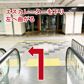 ⑥ 駅構内を出て右へ曲がったら写真の場所から地下へ降りる