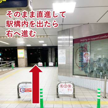 ⑤ そのまま直進し、駅構内を出たら右へ進む