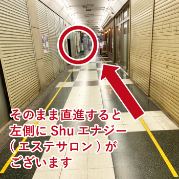 ⑨ そのまま直進すると左側にShuエナジー(エステサロン)がございます